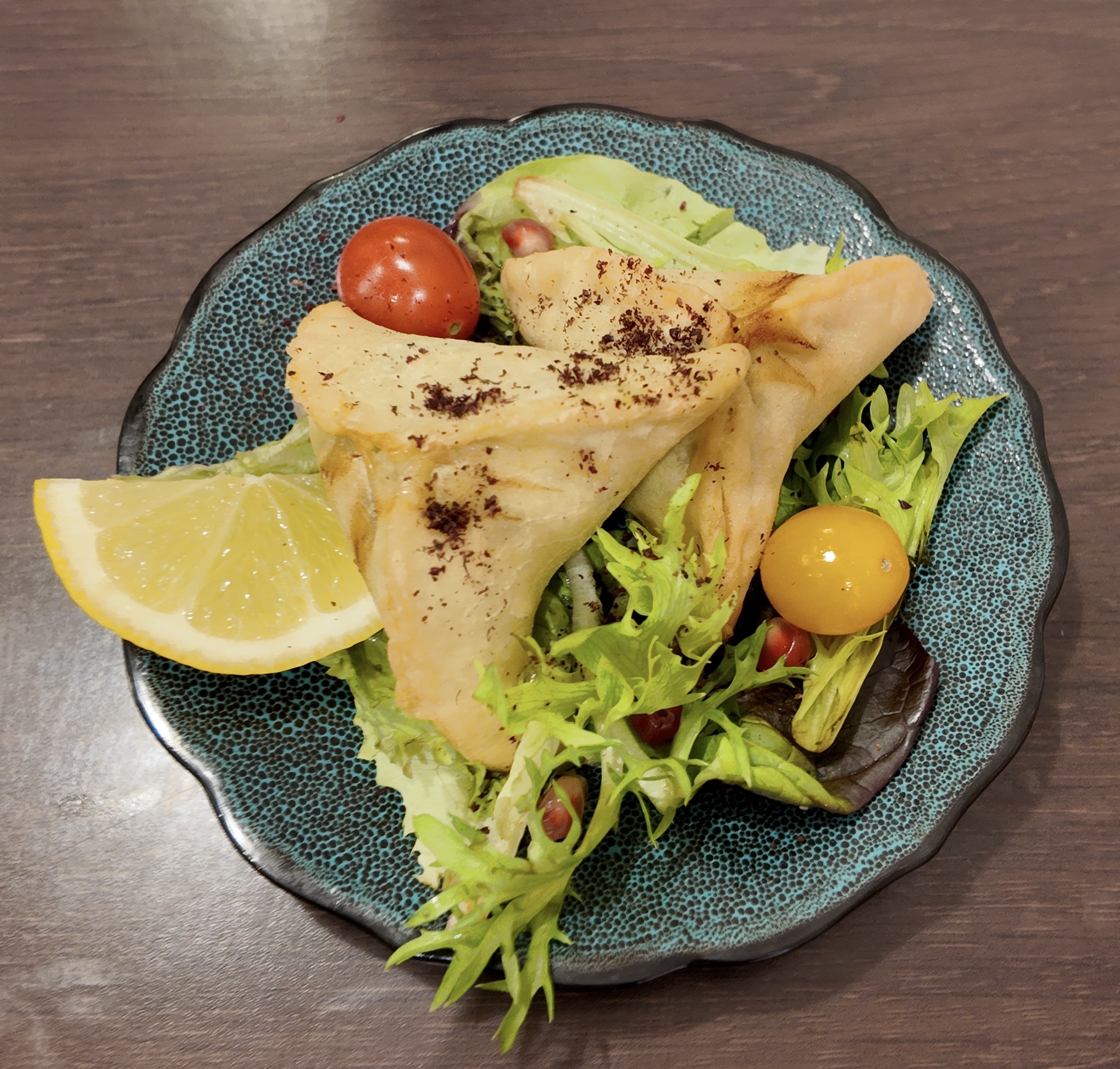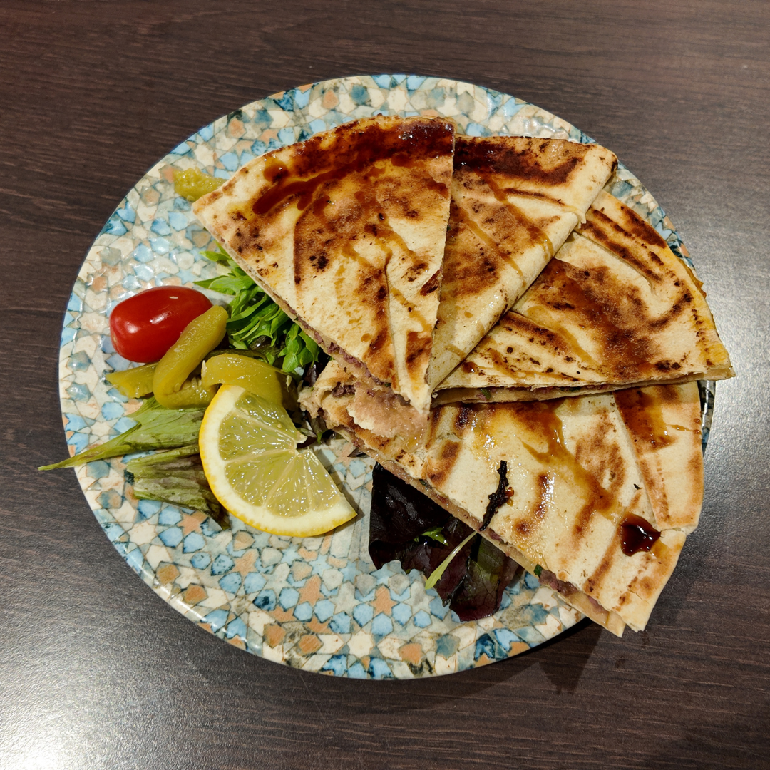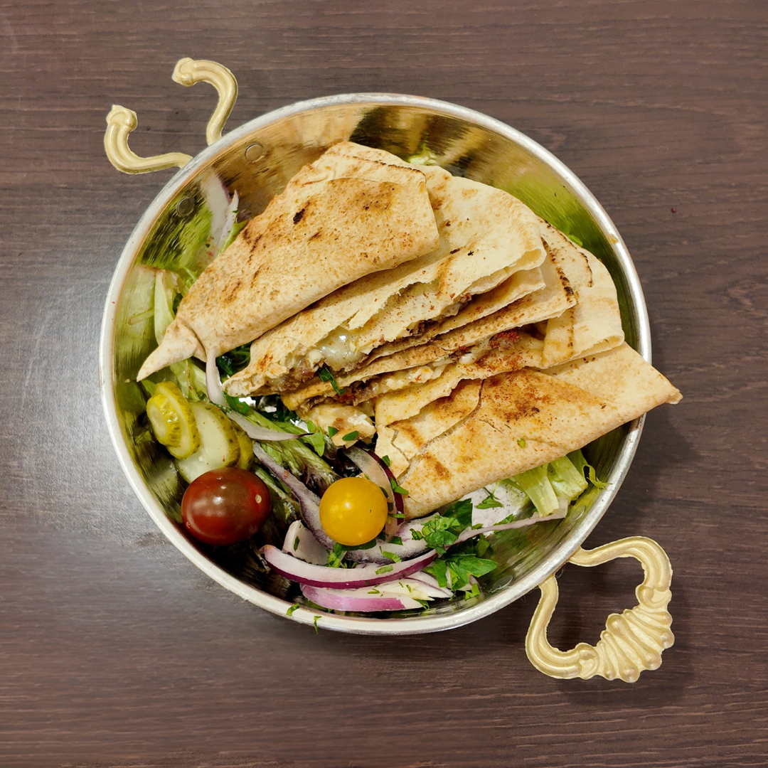 Triangles de pain pita farcis de viande de boeuf hachée, relevés d'épices et d'aromates savoureux.