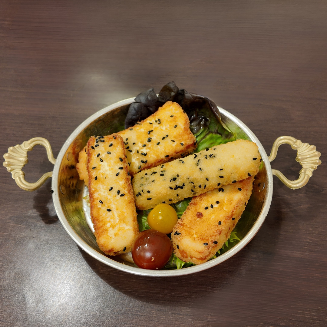 Triangles de pain pita garnis d'un mélange onctueux de trois fromages à la libanaise