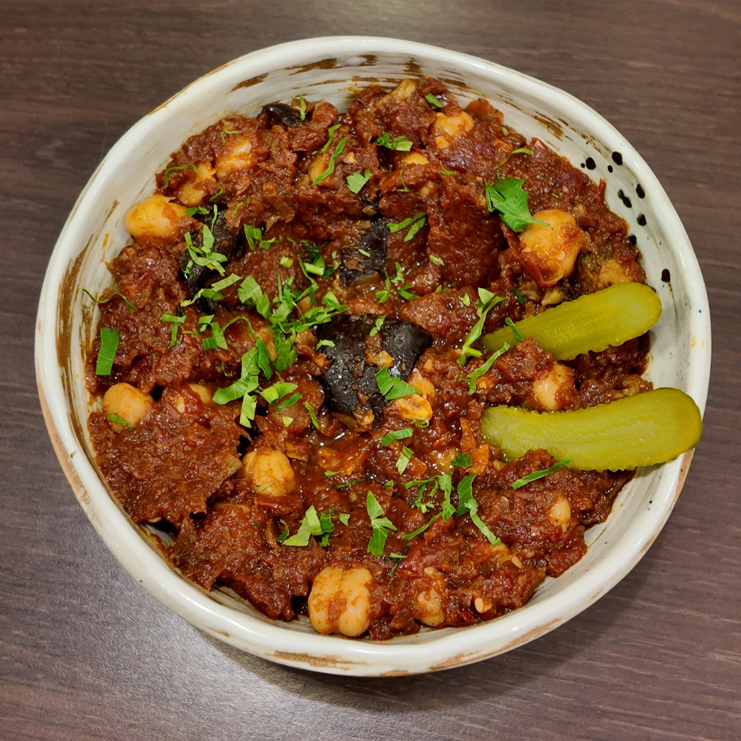 Ratatouille à la libanaise, à base de pois chiches et d'aubergines dans une sauce tomatée