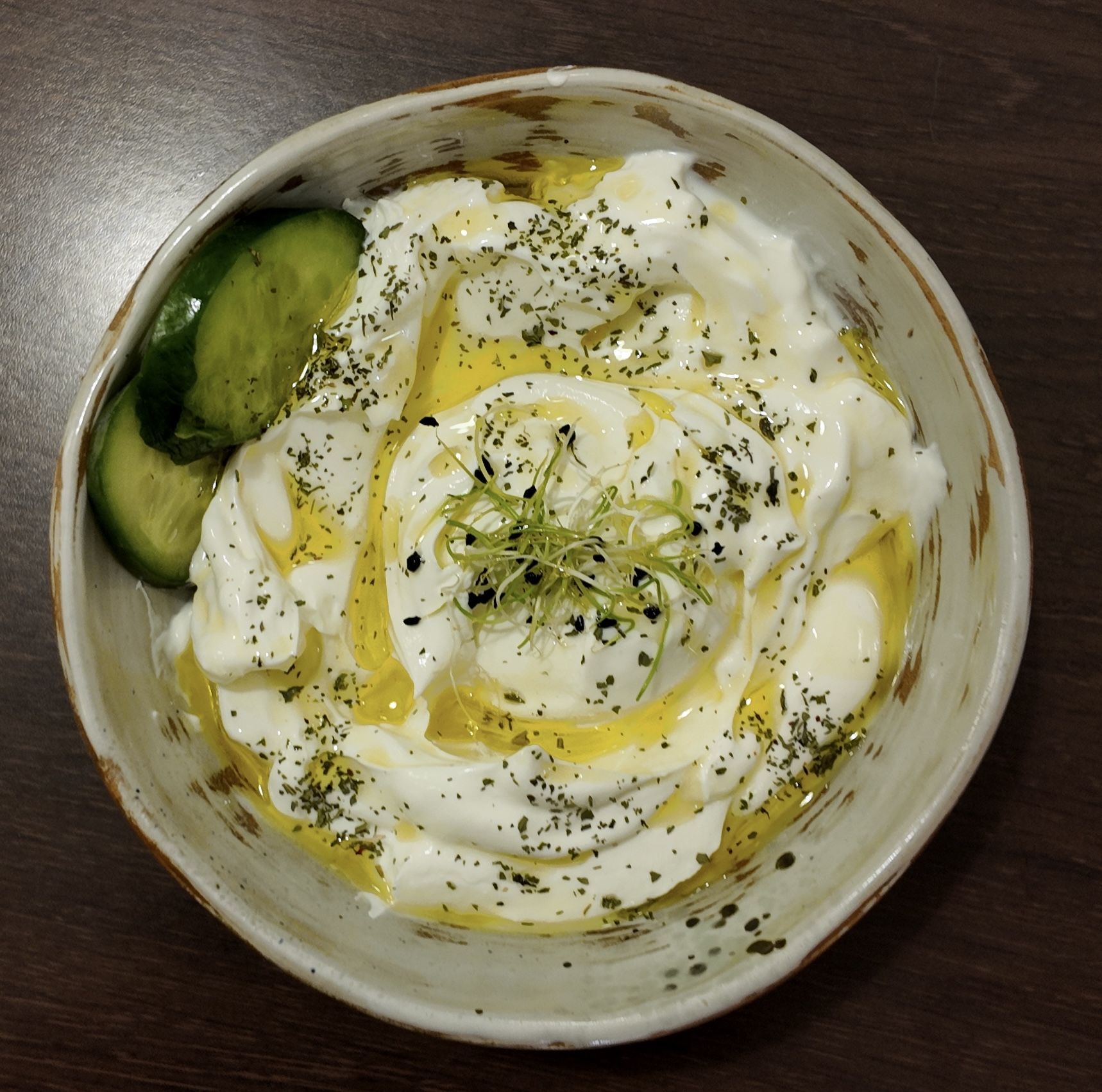 Fromage frais libanais, filet d'huile d'olive et herbes aromatiques | Origan, Basilic et Romarin
