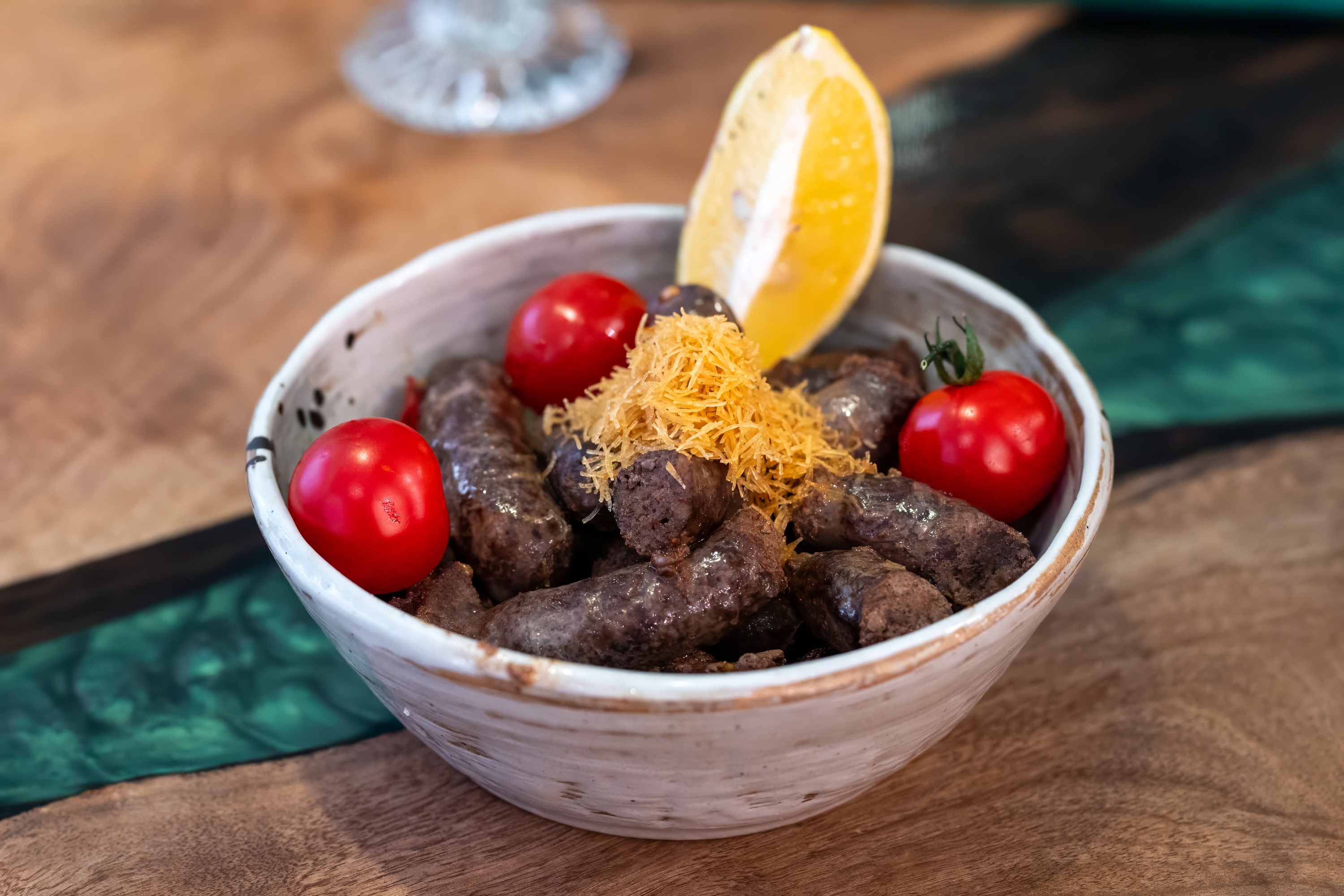 Mini Merguez libanaises à base de viande de boeuf, sautées et arrosées de jus de citron